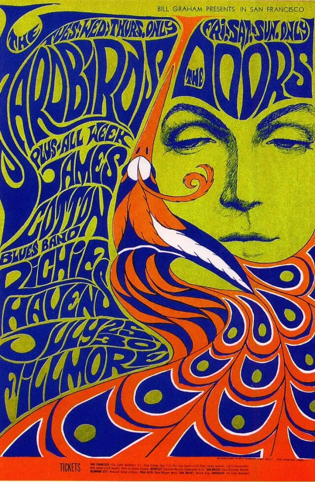 Wes Wilson was one of the biggest designers during the psychedelic era, who was very motivated by art nouveau.